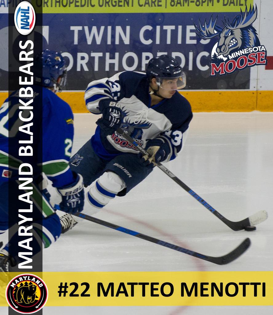 Matteo Menotti signs NAHL Tender for the 2018-2019 season with the Maryland Blackbears