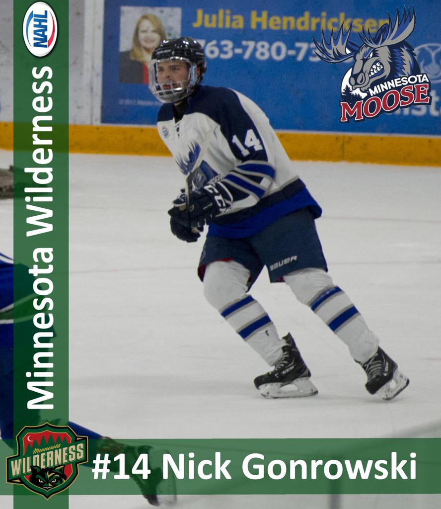 Nicholas Gonrowski was drafted in the 8th round by the Minnesota Wilderness in the NAHL